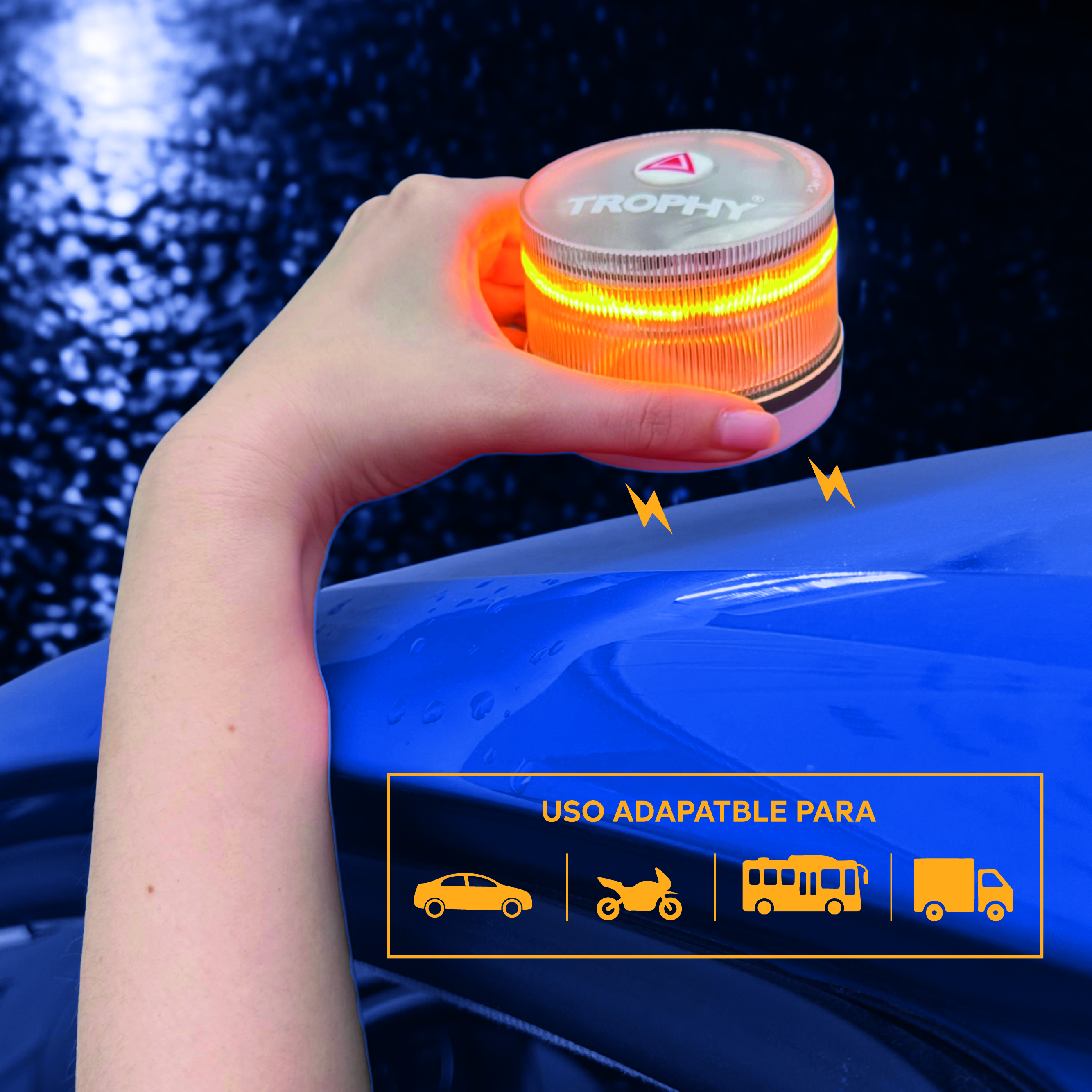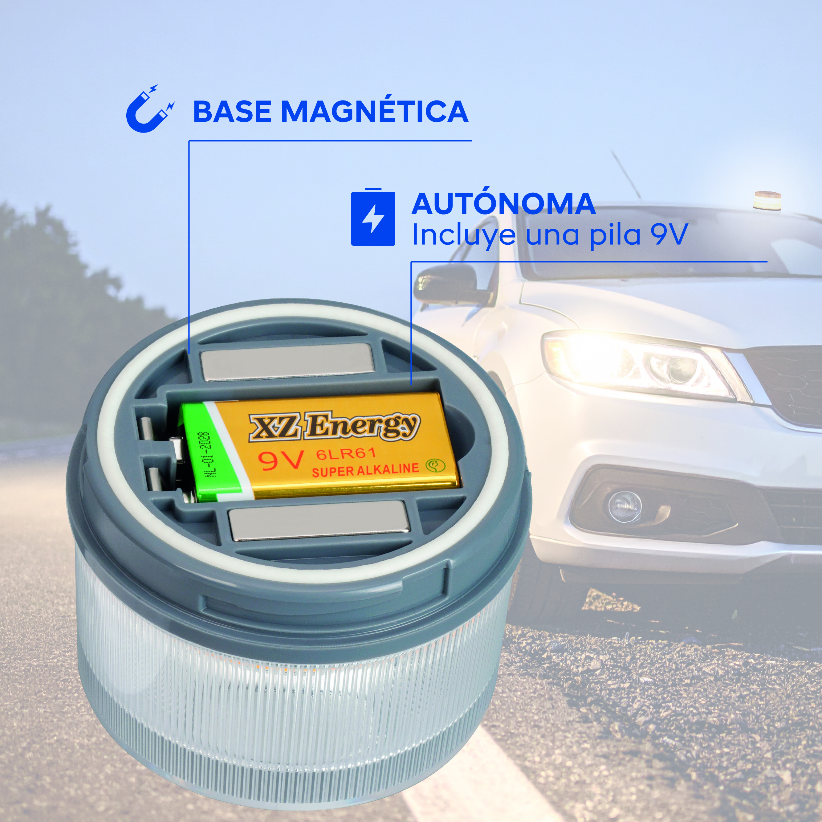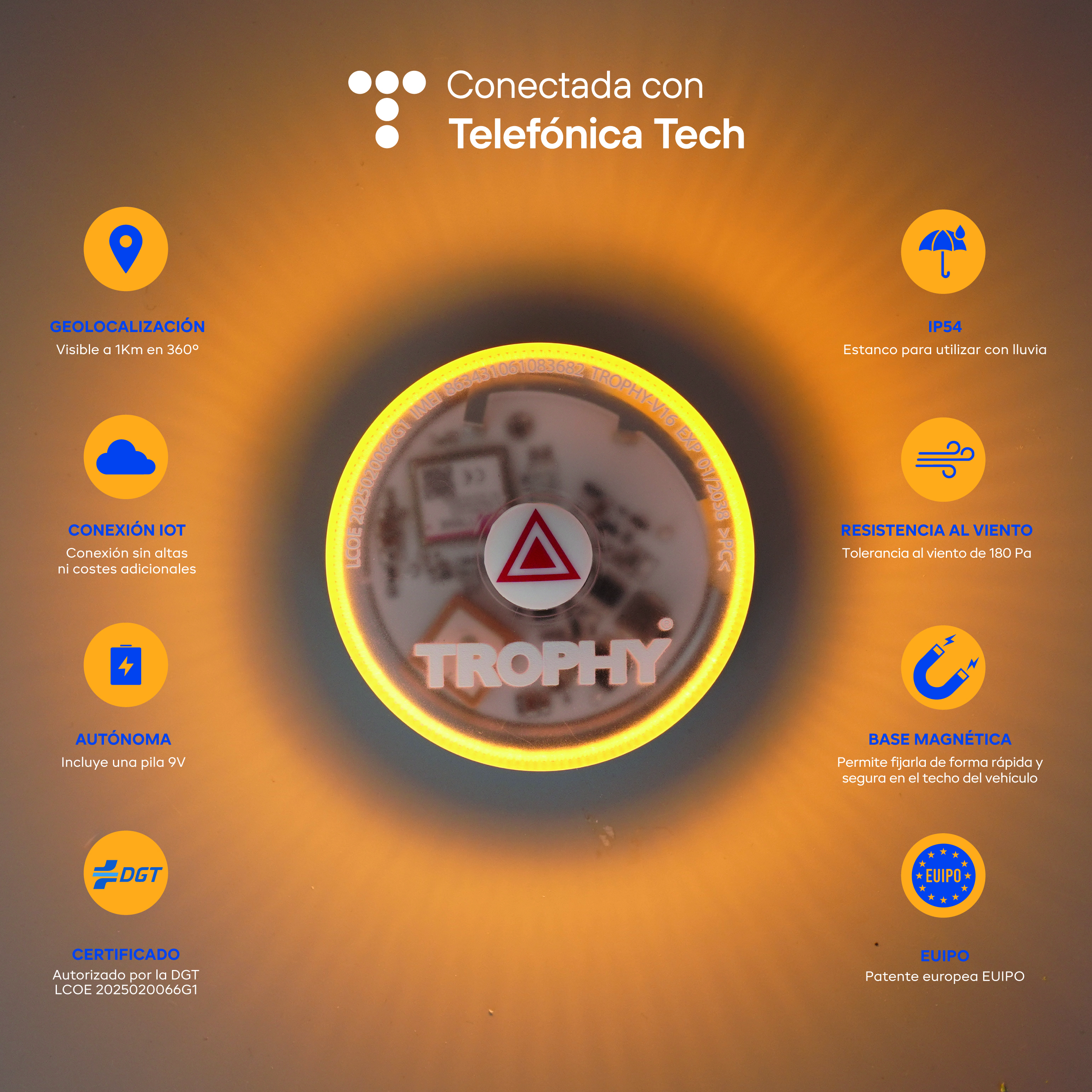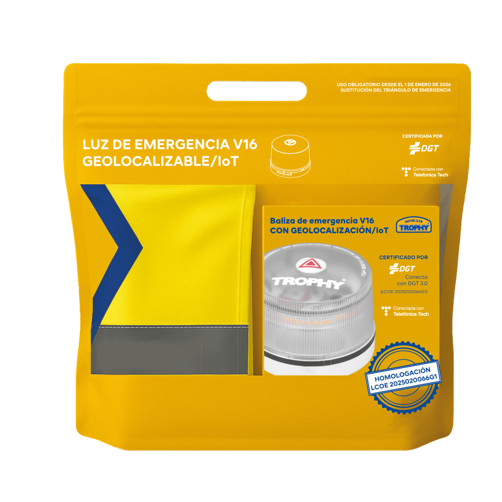 Este dispositivo emite una luz visible en 360° y hasta 1 km de distancia, incluso en condiciones adversas de lluvia, viento o baja visibilidad. Además, cuenta con tecnología de geolocalización IoT, lo que permite enviar la ubicación exacta del vehículo a la plataforma de la DGT 3.0, mejorando la asistencia y reduciendo los riesgos en carretera.